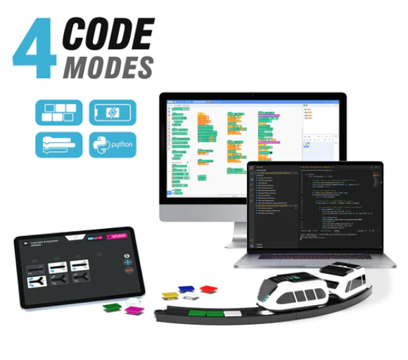 Intelino Edu Central app provides interactive coding lessons and activities using the smart train. Real-time targeted feedback and guidance helps children to build the foundations and push forward with their coding journey!